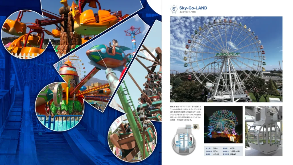 子どもから大人まで楽しめる遊園地・テーマパークへのテーマ性・世界観・回遊性を重視した導入から、商業施設や自治体などへの集客装置として効果の高い観覧車やファミリーライドの多数導入事例がございます。