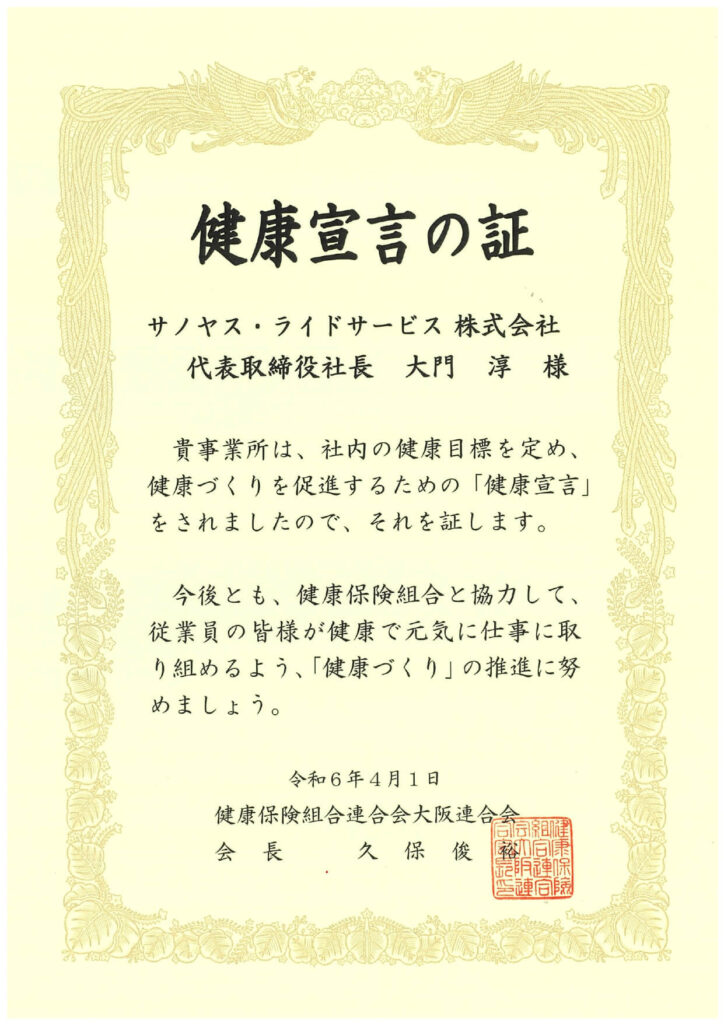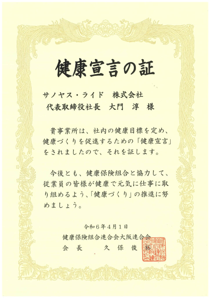 ここに「健康宣言」を表明し、これからも従業員一人ひとりを大切にし、ともに成長して参ります。